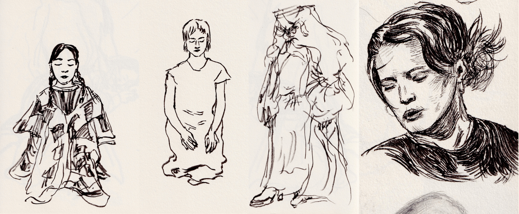 Ink sketches of “O, D, E” scenes by Danyon Saxon