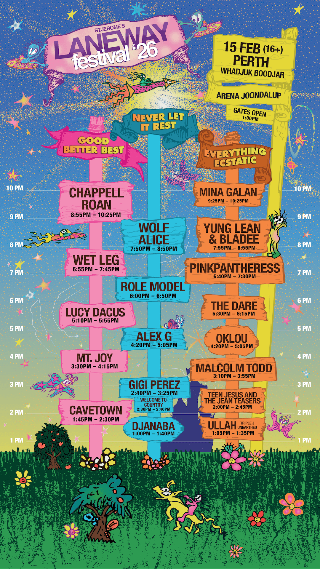 Here are the Laneway Festival 2026 Perth Set Times (chronological order):